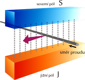 Pravidlo určující směr proudovodiče v magnetickém poli. Položíme-li levou ruku na vodič tak, aby prsty směřovaly po proudu a magnetické siločáry vstupovaly do dlaně, potom se vodič pohybuje ve směru palce.